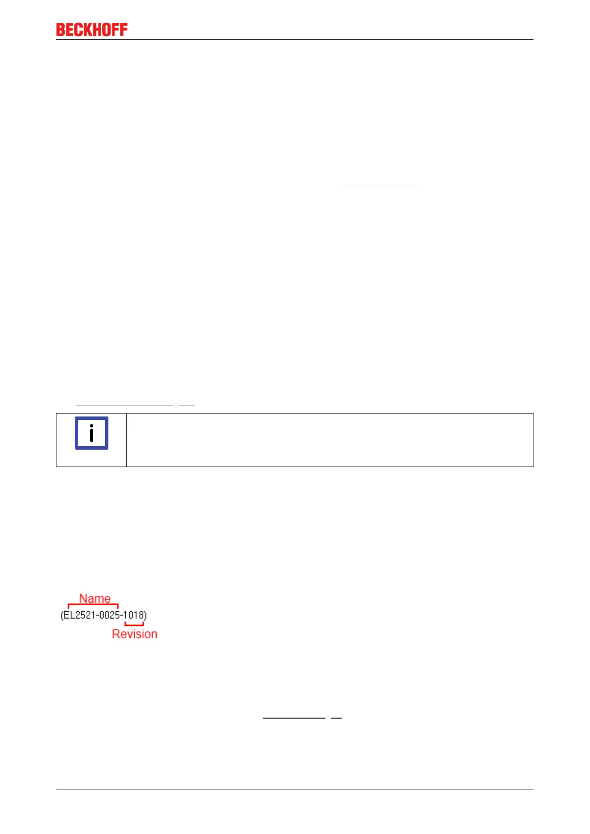 revision indicates the technical progress and is managed by Beckhoff. In principle, a device with a higher
