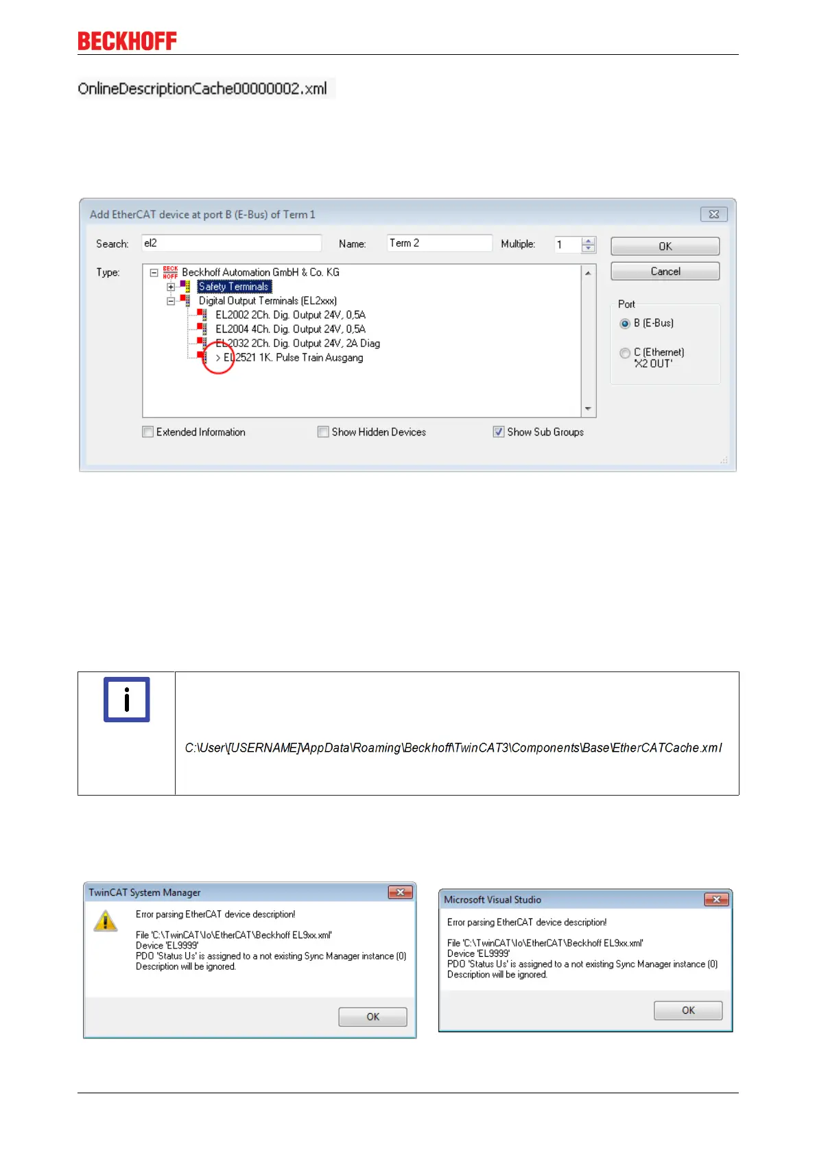 Fig.45: Information window for faulty ESI file (left: TwinCAT2; right: TwinCAT3)