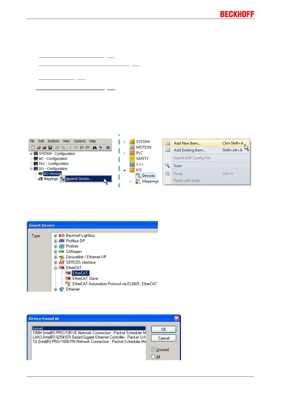 • detecting the EtherCAT device [}59] (Ethernet port at the IPC)