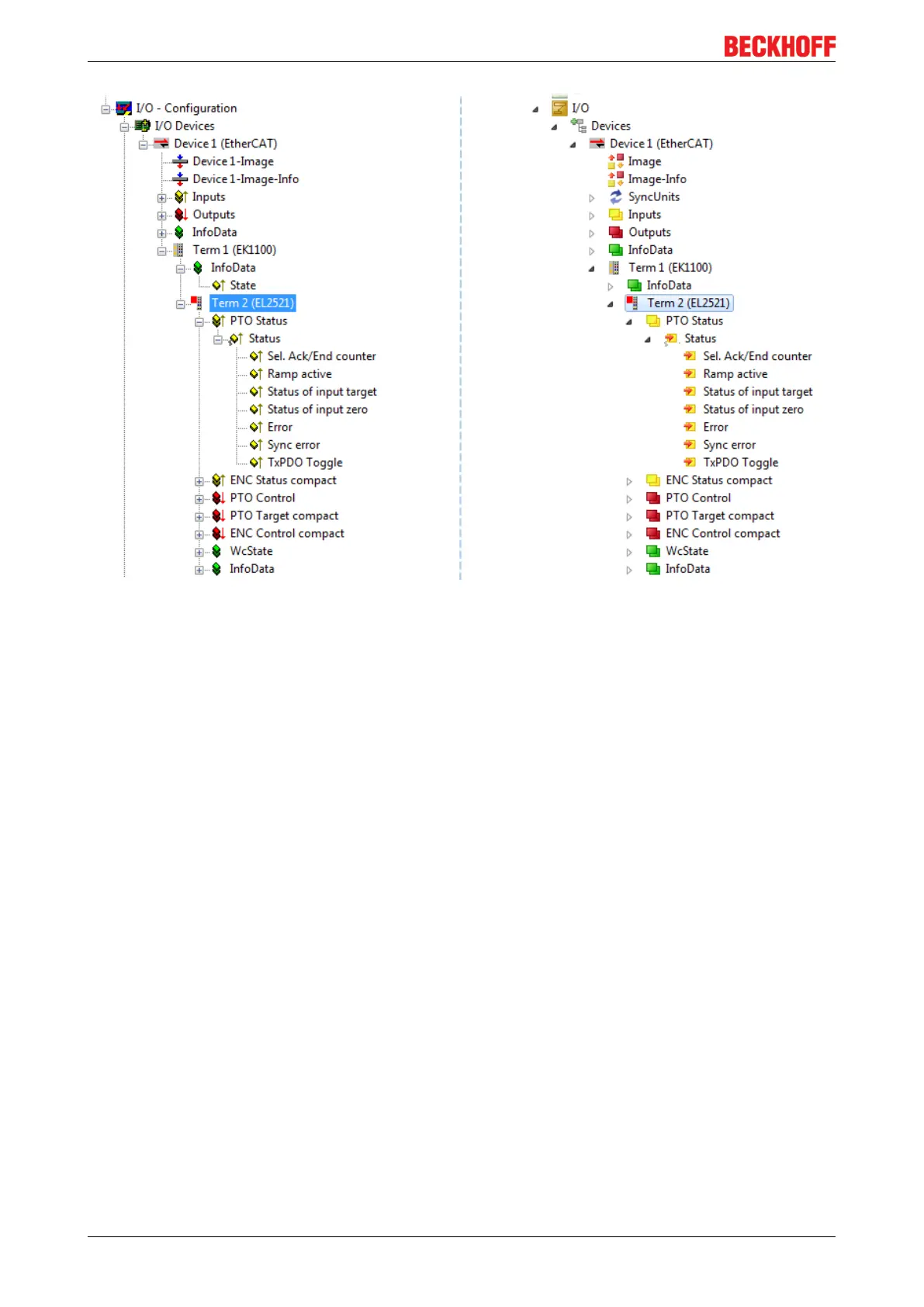 Fig.57: EtherCAT terminal in the TwinCAT tree (left: TwinCAT2; right: TwinCAT3)