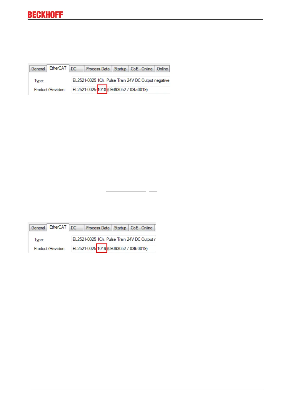 After some time Beckhoff extends the EL2521-0025 by a new feature C. Therefore the FW is changed,