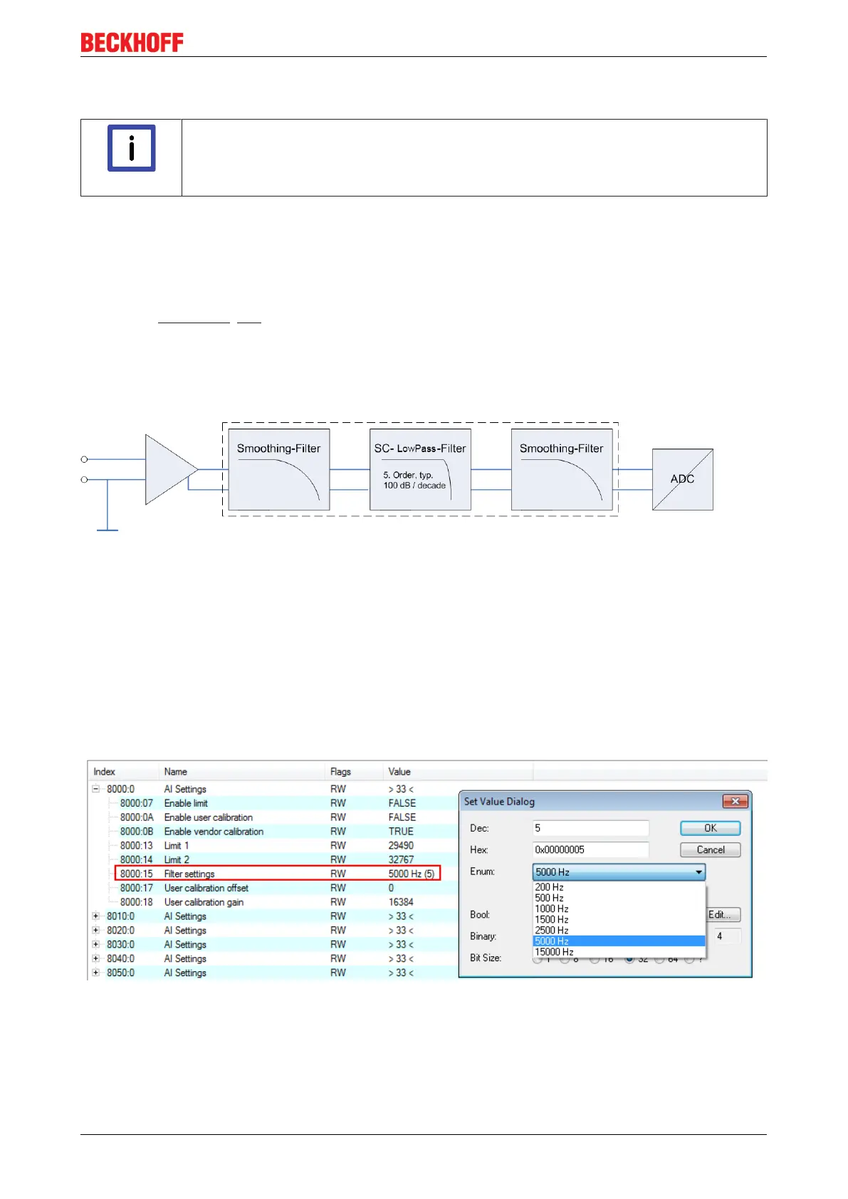 CoE setting 0x8000:15 [}95]. The corresponding anti-aliasing filters are placed up or downstream and are