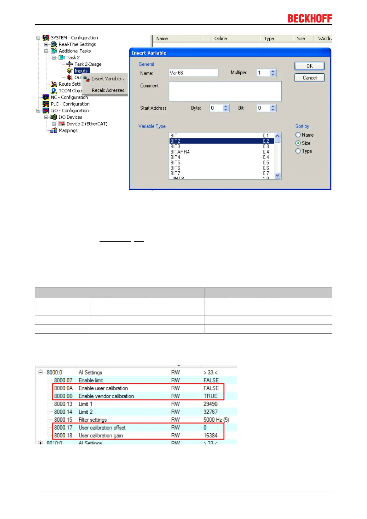 Fig.103: User settings and vendor calibration in the CoE online directory