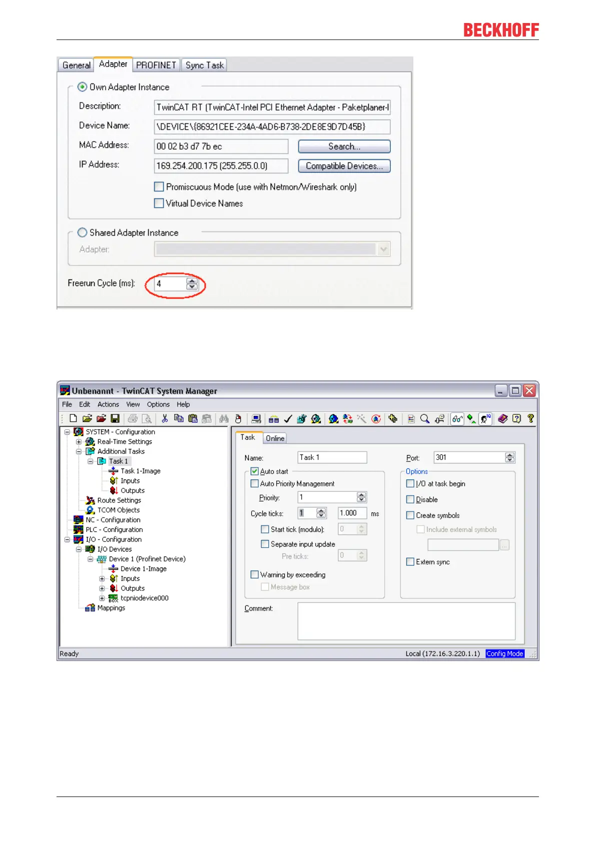 aforementioned SyncTask. The call time for the task must not be longer than the PROFINET cycle time! If a