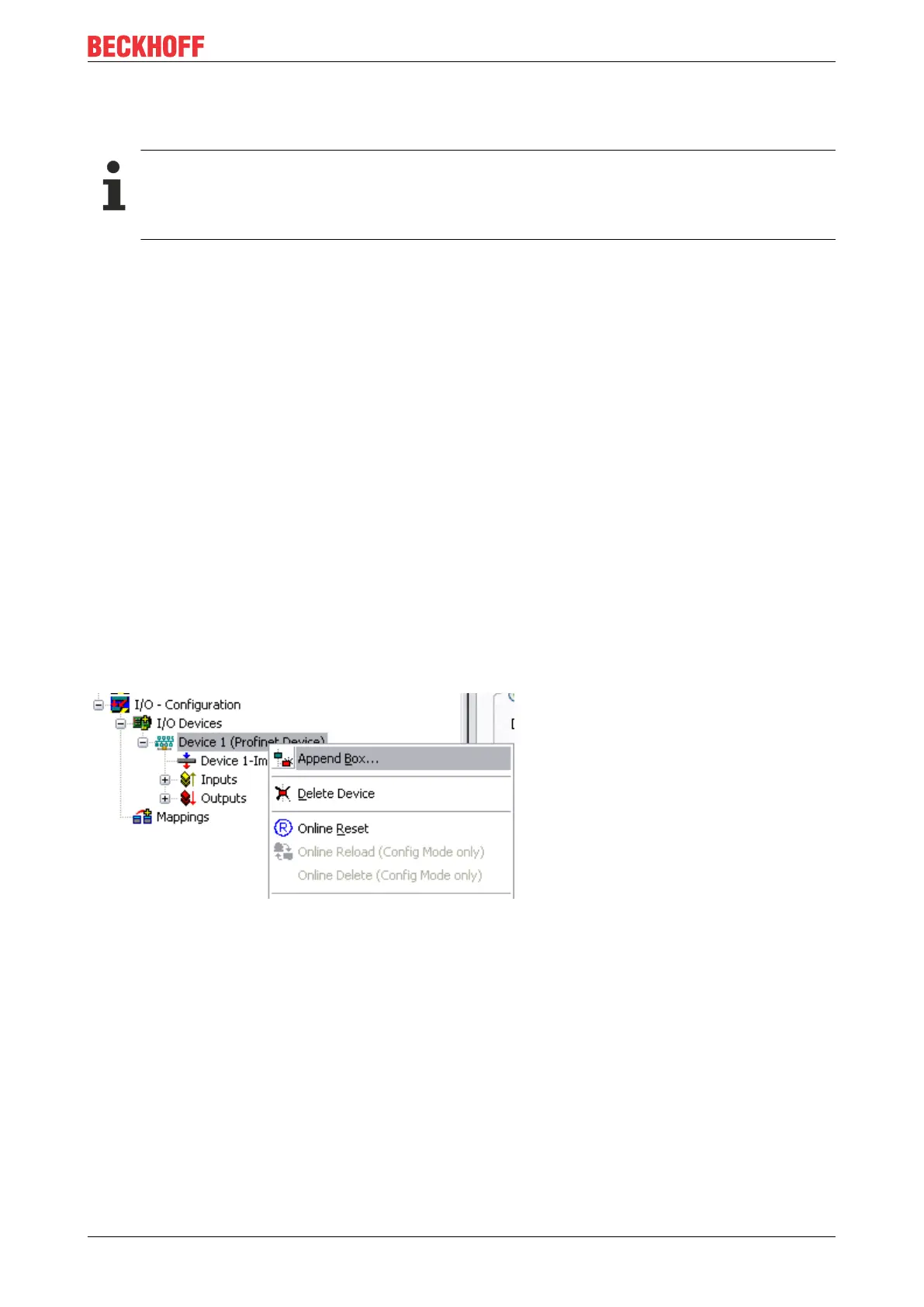 A PROFINET protocol is then added by means of the right mouse button. Precisely one TwinCAT device