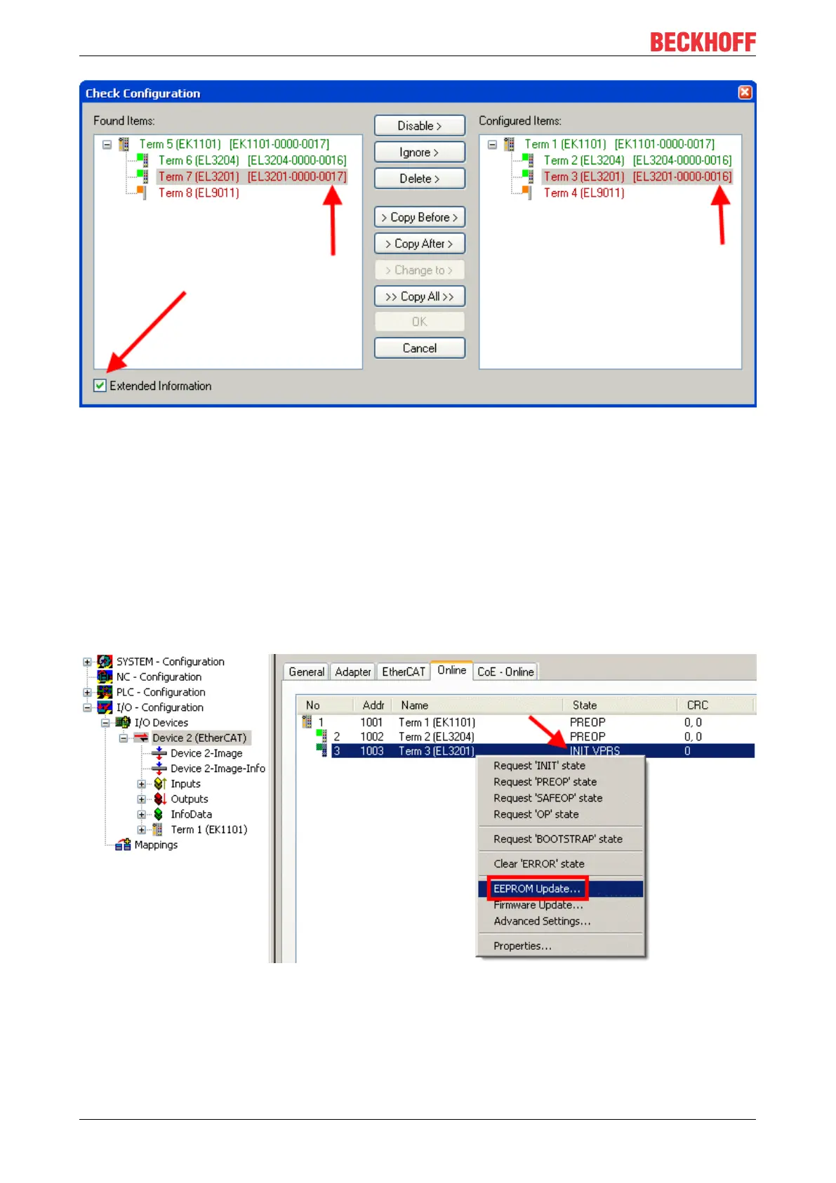 • Right-clicking on the slave in the online display opens the EEPROM Update dialog, Fig. EEPROM