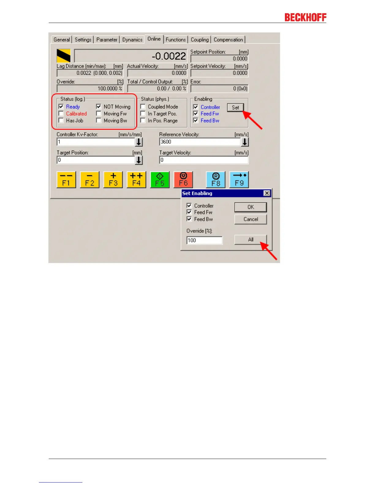 You can now move the axis with the function keys F1, F2 (Backward) or F3, F4 (Forward).