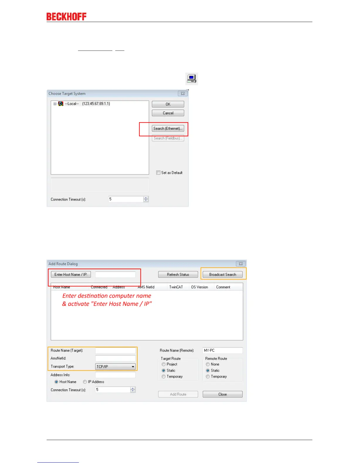 Use "Search (Ethernet)..." to enter the target system. Thus a next dialog opens to either: