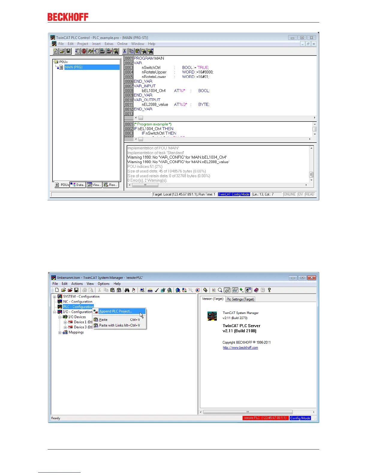 First, integrate the TwinCAT PLC Control project in the System Manager via the context menu of the PLC