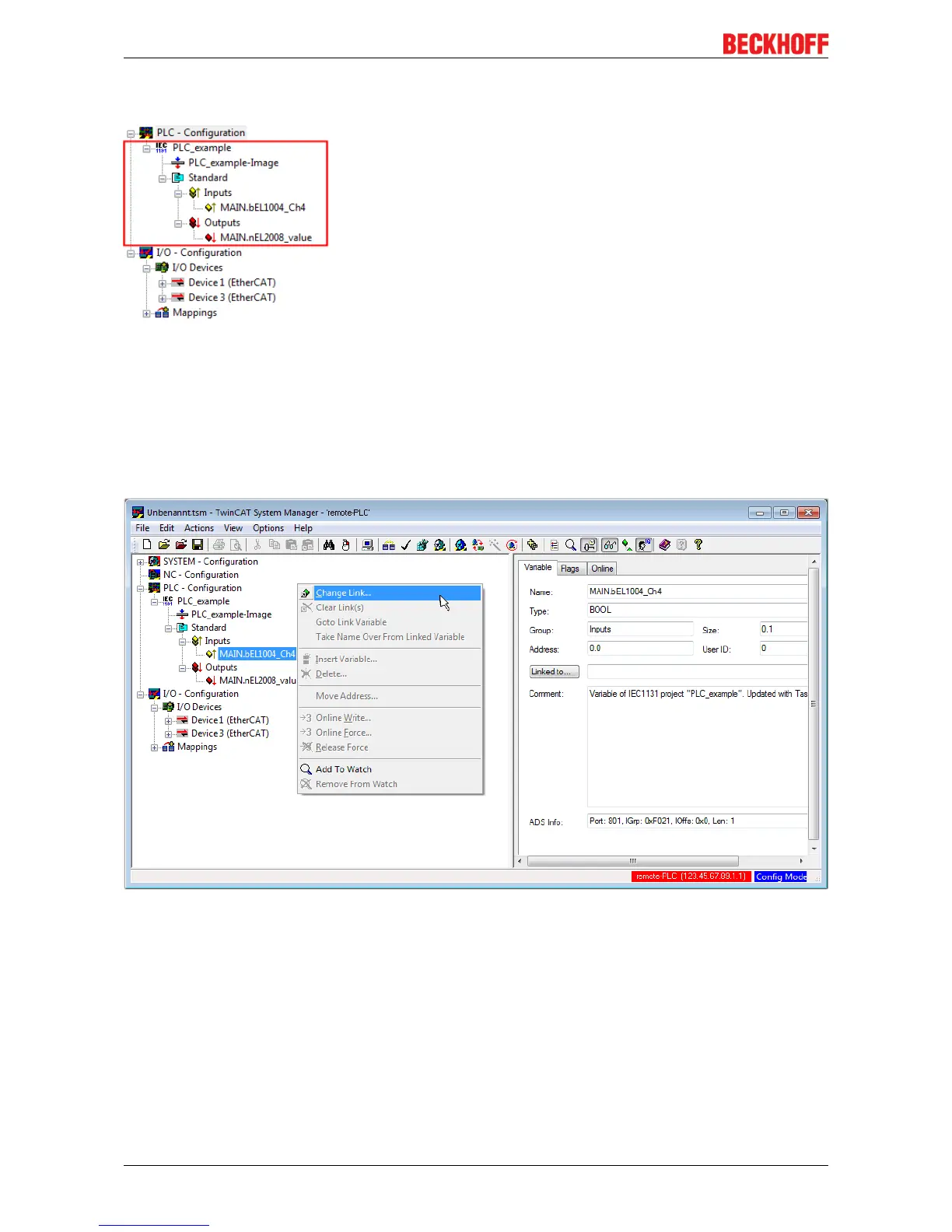 The two variables "bEL1004_Ch4" and "nEL2008_value" can now be assigned to certain process objects of