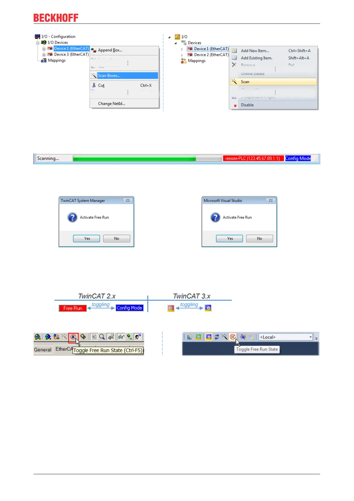 Fig.118: Config/FreeRun query (left: TwinCAT2; right: TwinCAT3)