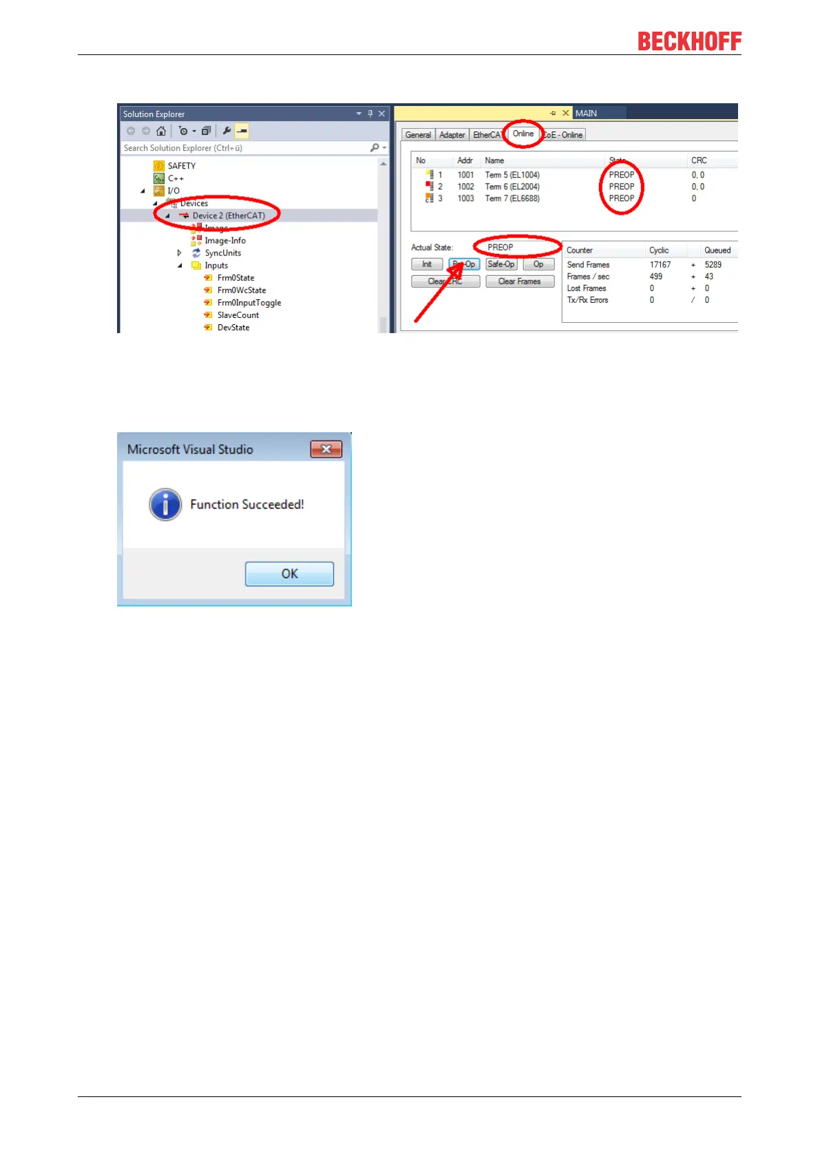 EtherCAT strand (Device 2 in the example) and select the Online tab.