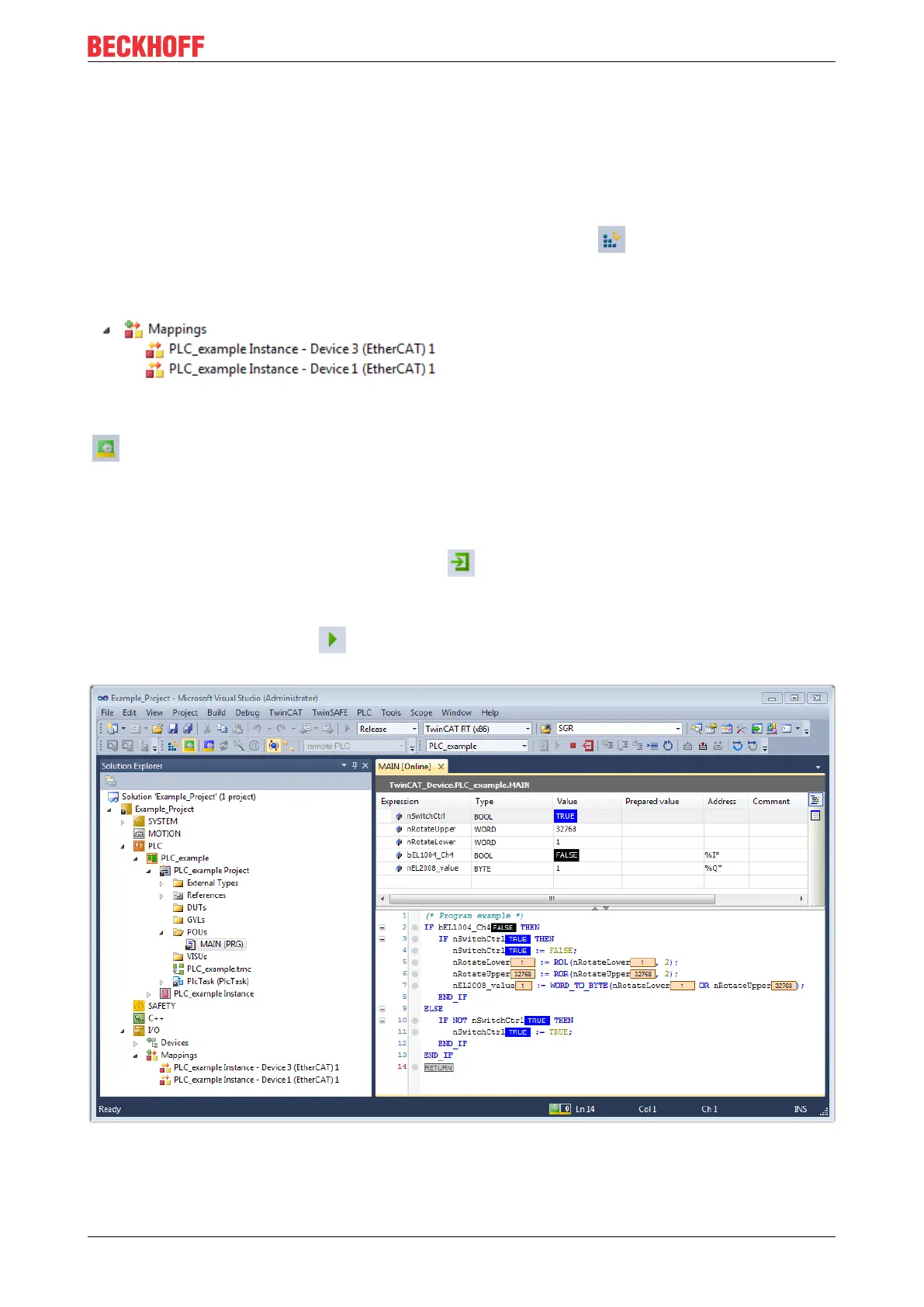 Fig.81: TwinCAT development environment (VS shell): logged-in, after program startup