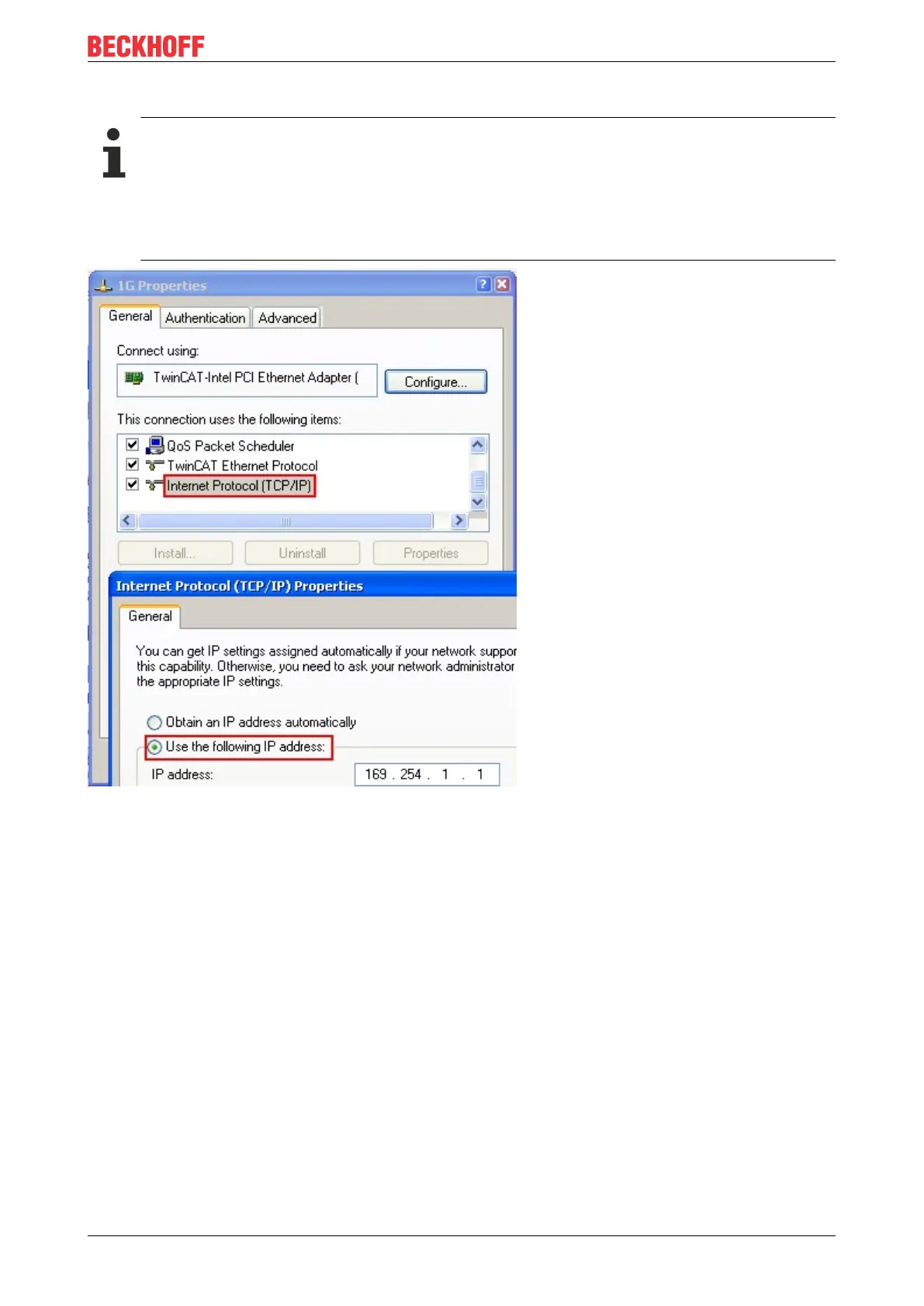 specify a fixed IP address for this port via the “Internet Protocol TCP/IP” driver setting and to disable