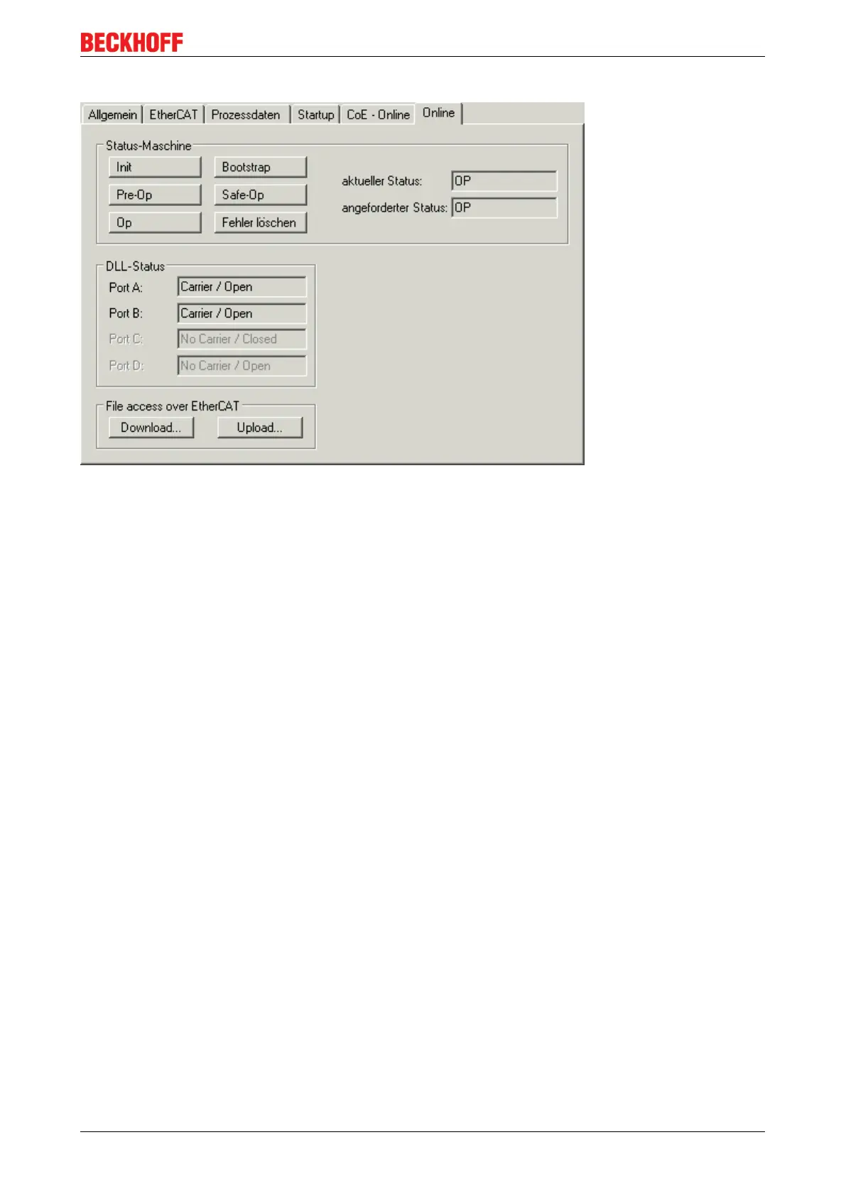 Indicates the DLL status (data link layer status) of the individual ports of the EtherCAT slave. The DLL status