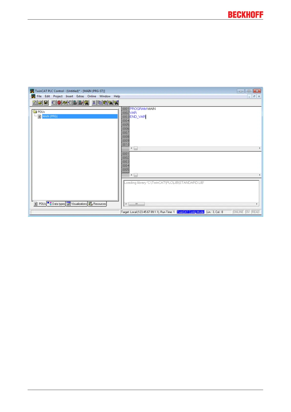 After starting TwinCAT PLC Control, the following user interface is shown for an initial project: