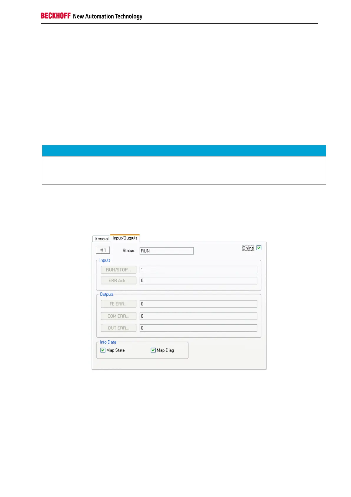 If the checkboxes or the properties 'Map State' and 'Map Diag' are set, the state and diagnostic data for