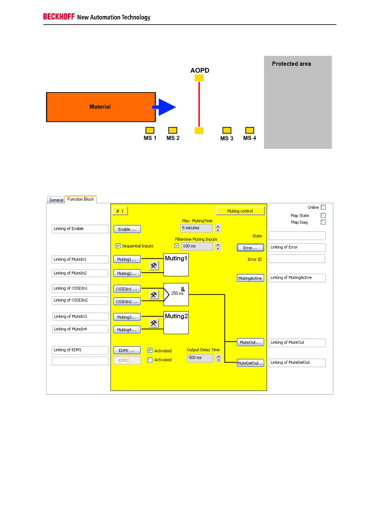 3.8.3.1 Configuration example with 4 individual muting sensors