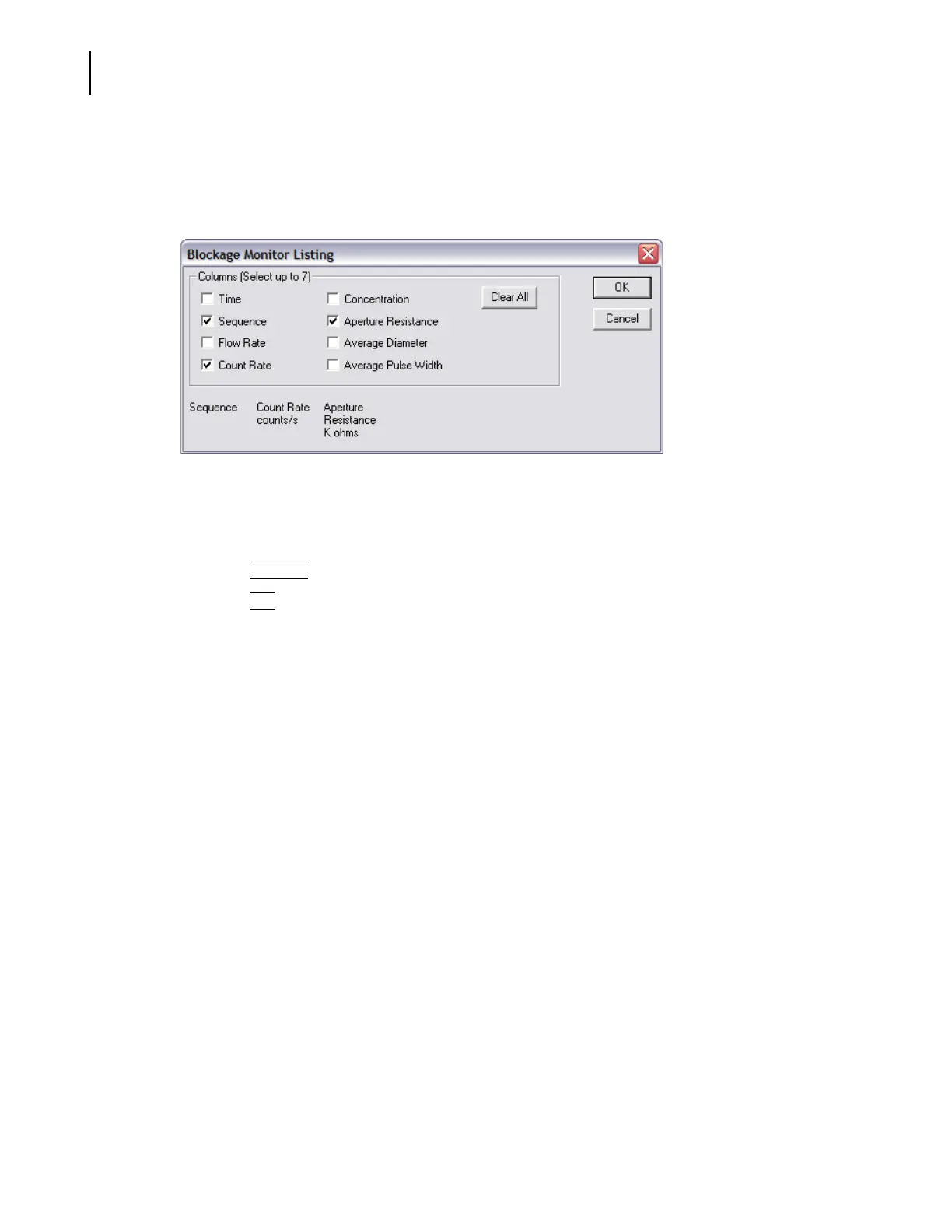 To select the data columns that will appear in the Blockage Monitor listing: