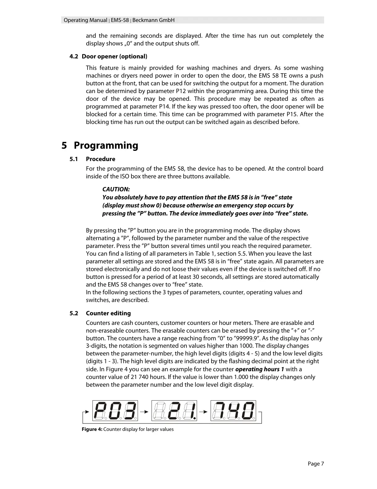 counter value of 21 740 hours. If the value is lower than 1.000 the display changes only