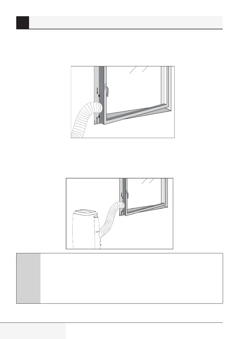 bas ou du milieu de la fenêtre) puis introduisez la gaine d’évacuation dans l’ouverture.