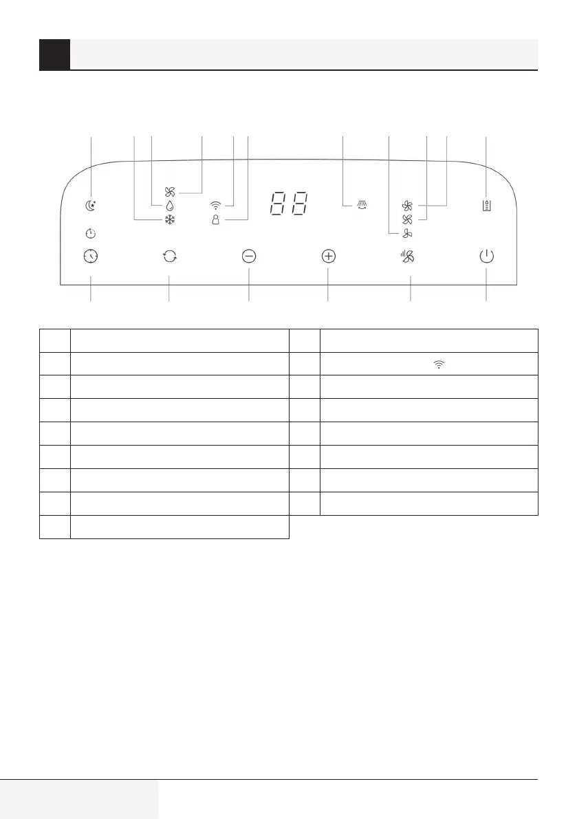F Brojač vremena uključen/isključen 9 Srednja brzina ventilatora