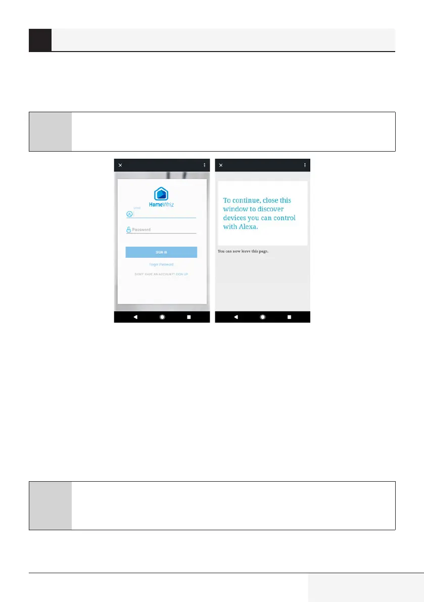 Scrivere le credenziali dell’account HomeWhiz e toccare “Collega adesso” o “Accedi” per collegare