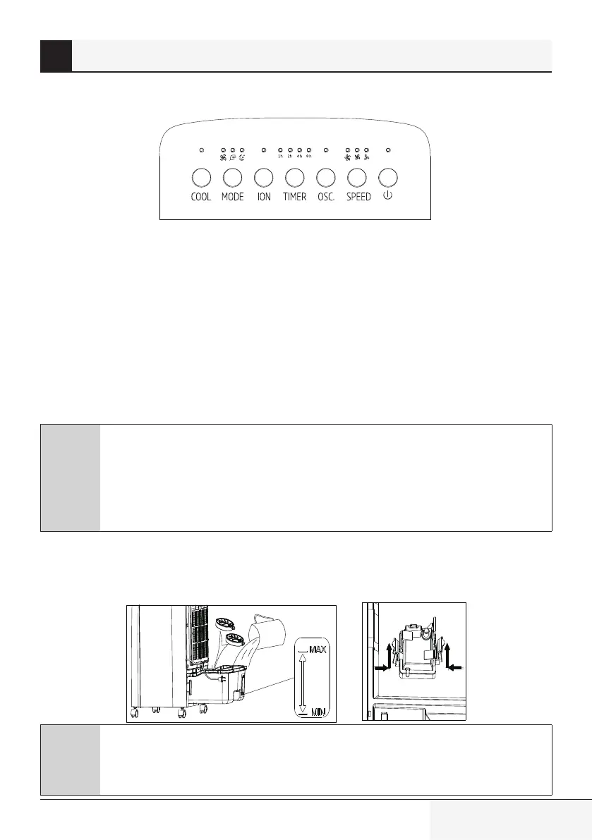 Lorsque le rafraîchisseur d'air est branché sur la prise électrique le bouton ON/OFF (Marche/Arrêt)