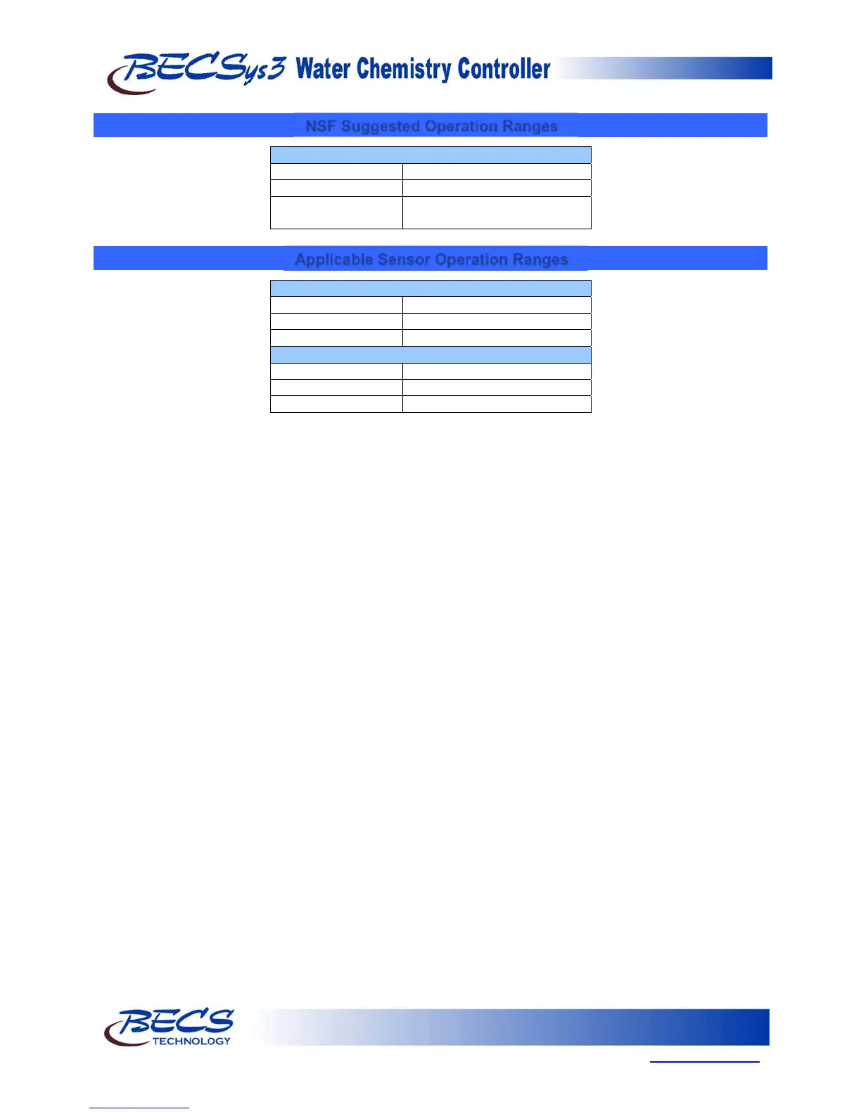 NSF Suggested Operation Ranges