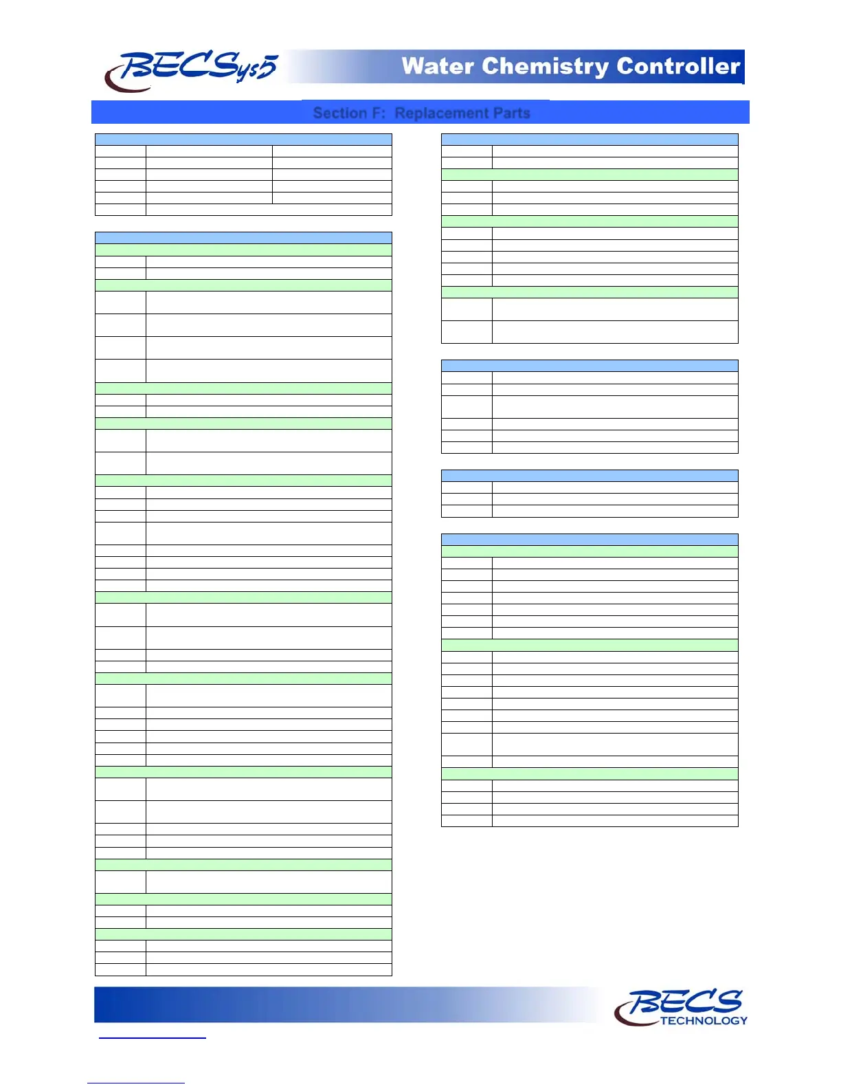 Section F: Replacement Parts