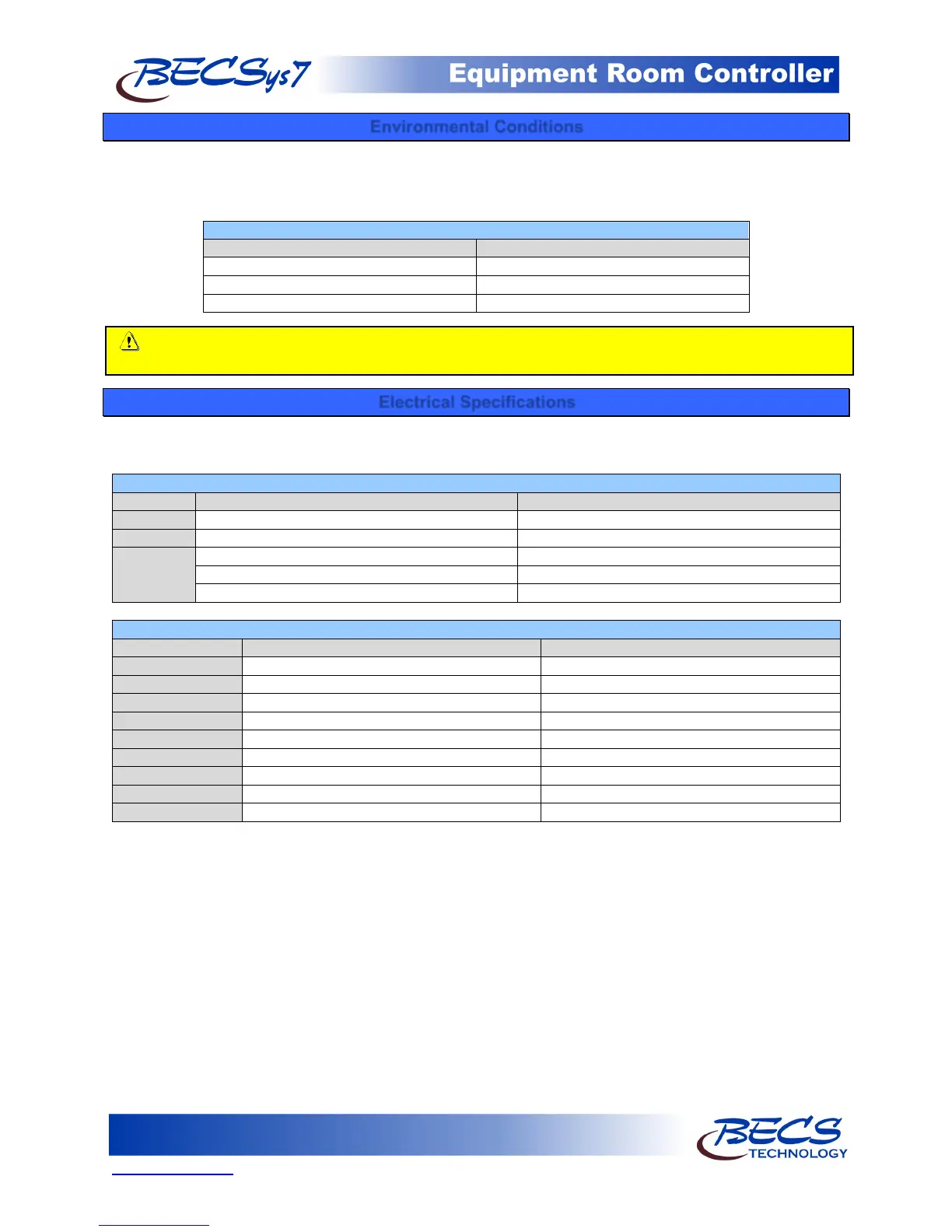 The BECSys7 may be ordered in either a 115VAC model or a 230VAC model. Following are the electrical specifications