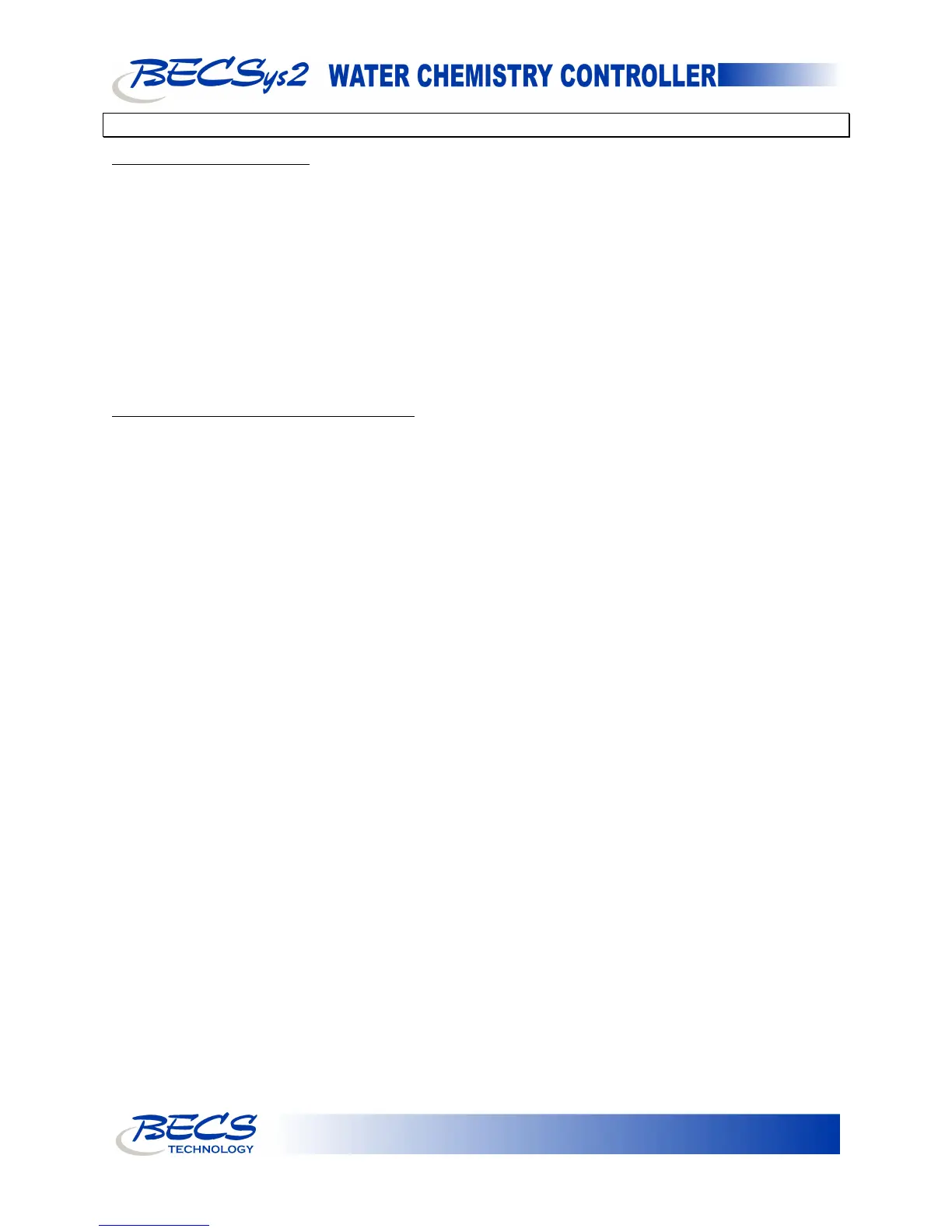 materials for a period of two years from the date of shipment. BECS warrants the pH and ORP