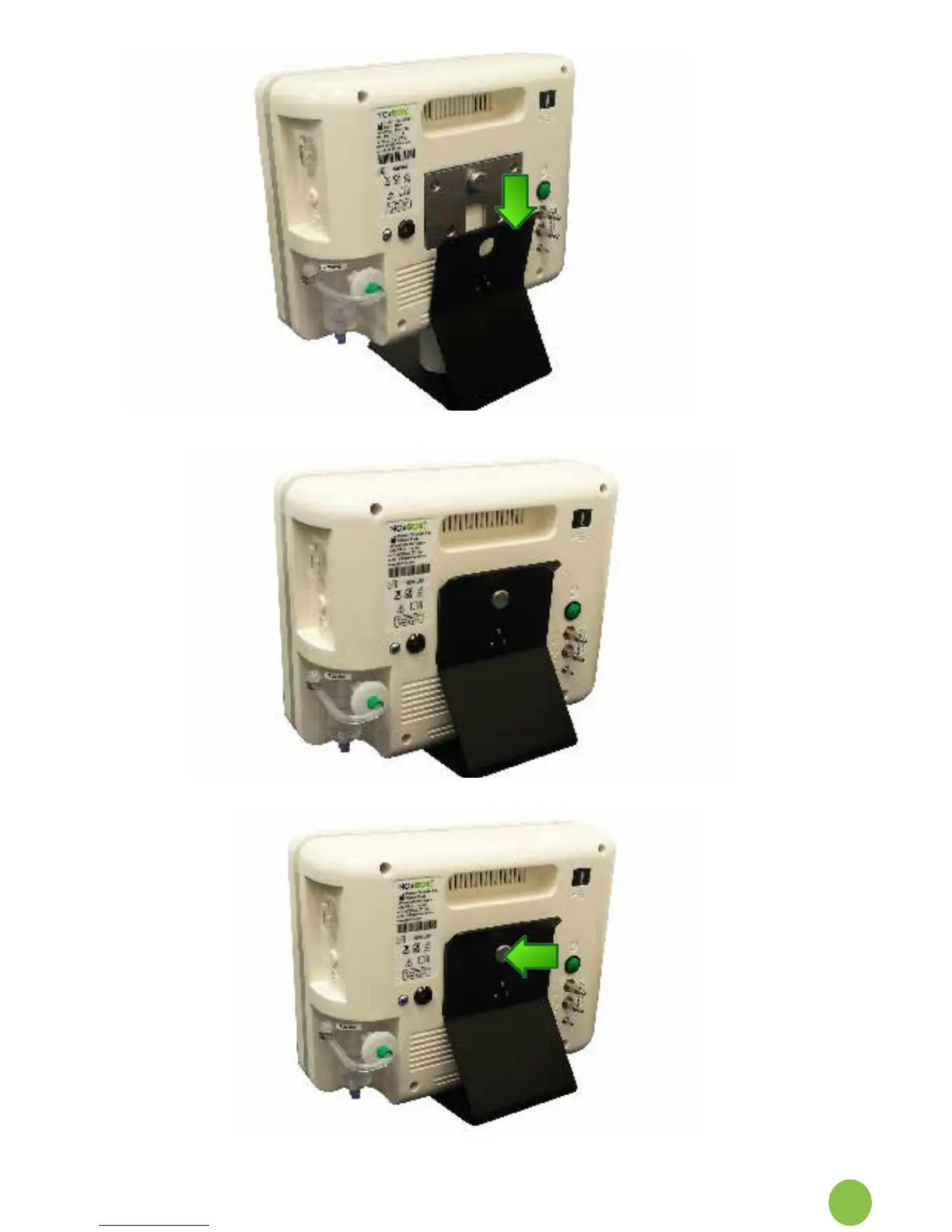 Align rear of monitor with trolley locking plate, and guide