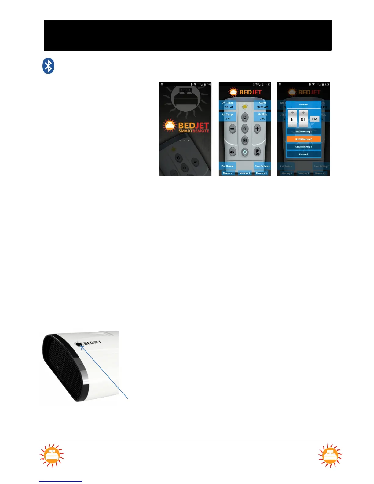 ID “BEDJET”. Pair with the BedJet device, load the Smart Remote App and enjoy! The