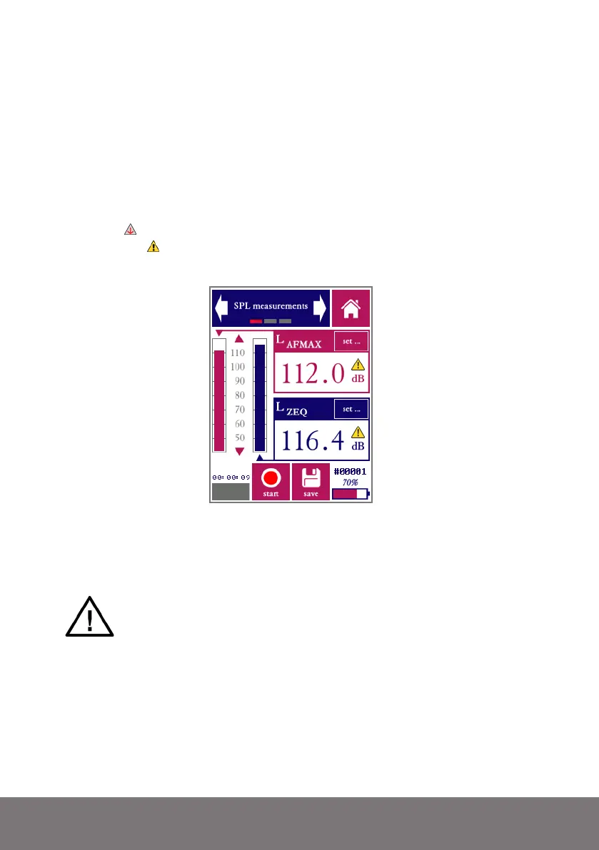 the “set” button in the level field to choose time weighting, frequency weighting, max hold