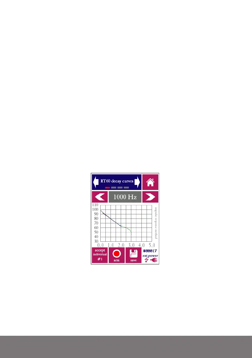 RT60 decay curves plotted once the measurement is completed (impulse response method)