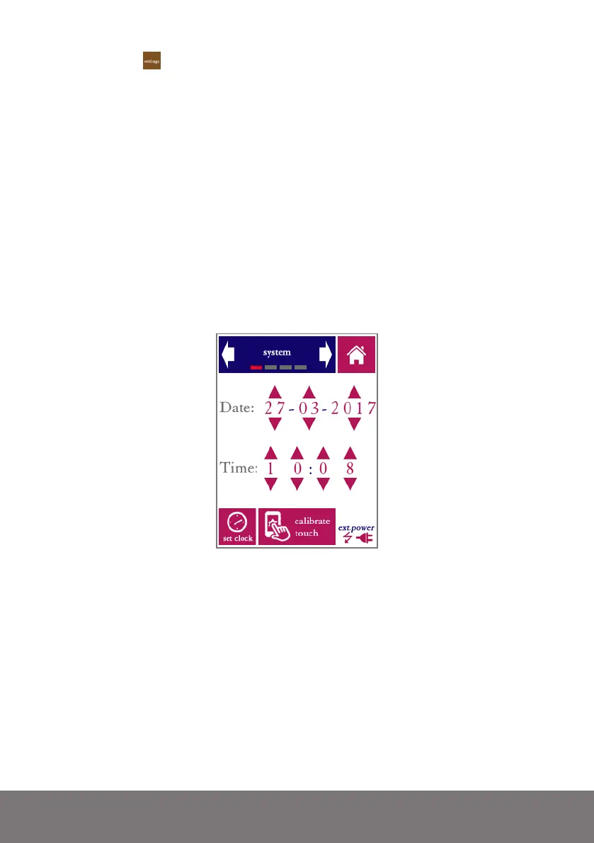 The system date and time are changed by means of the arrows (up/down). Note that your