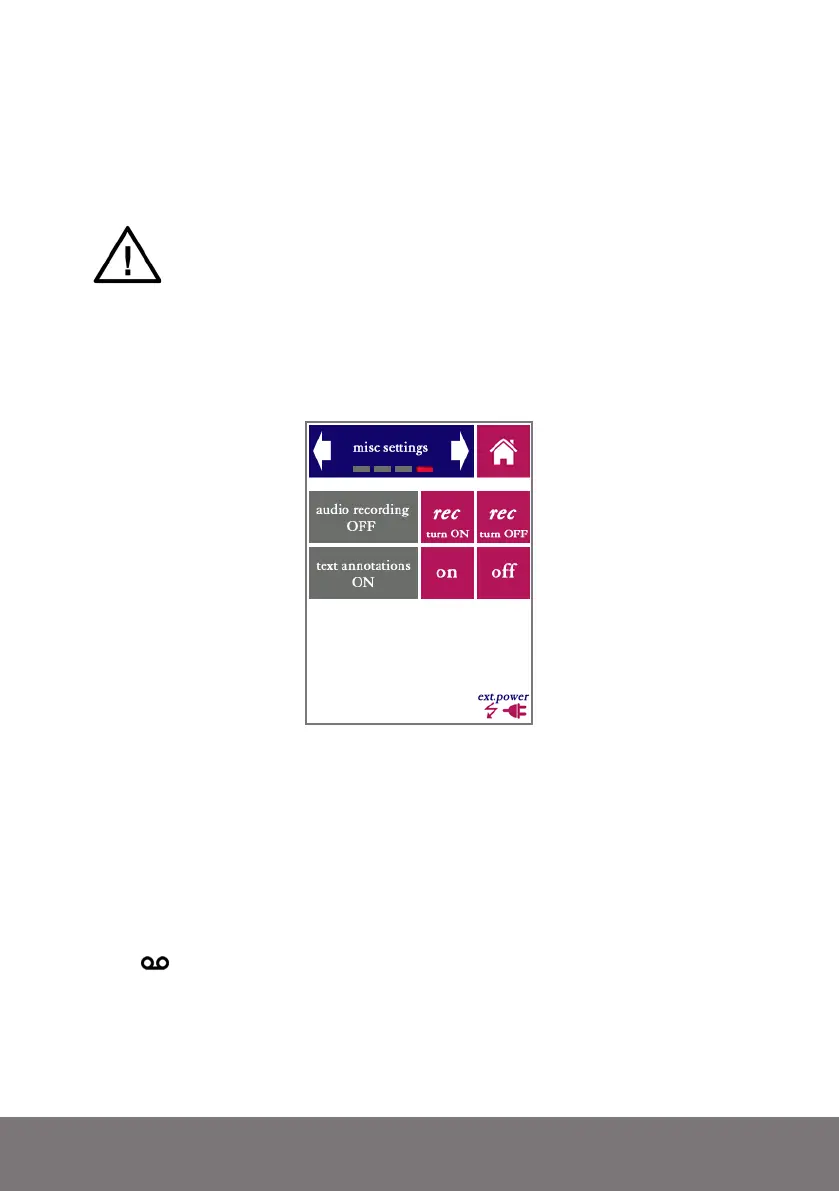 ing is turned off again from the settings menu. If audio is being recorded, a tape recorder