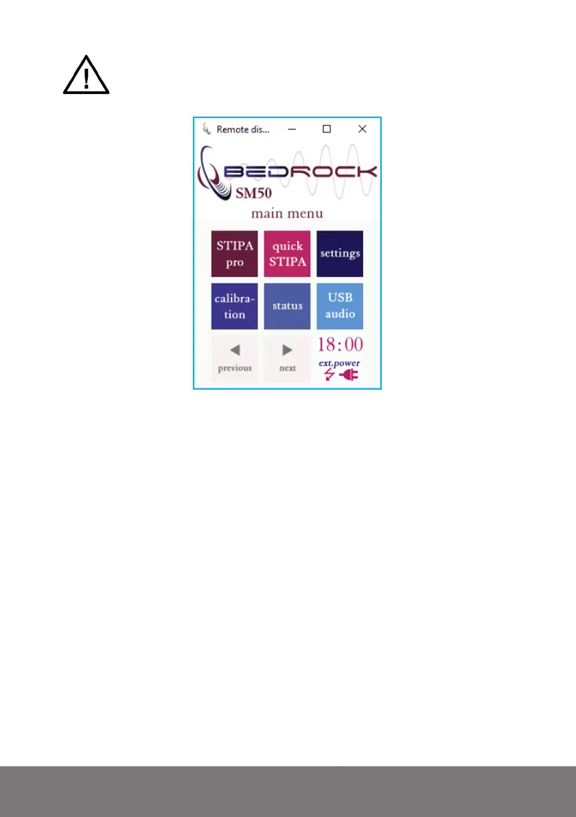 The main menu from the Bedrock SM50, as accessed through the Remote Display application