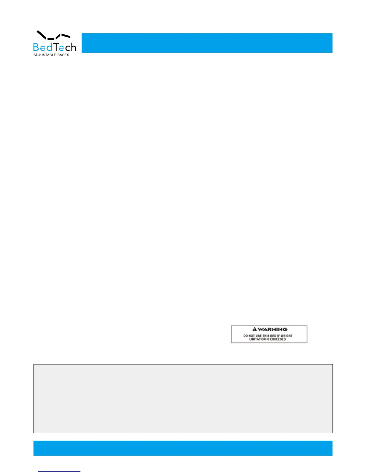 bedTech BT2000 - Safety and Warranty Information; Product Rating and Motor Duty Cycle; Weight Limits and Foundation Capacity