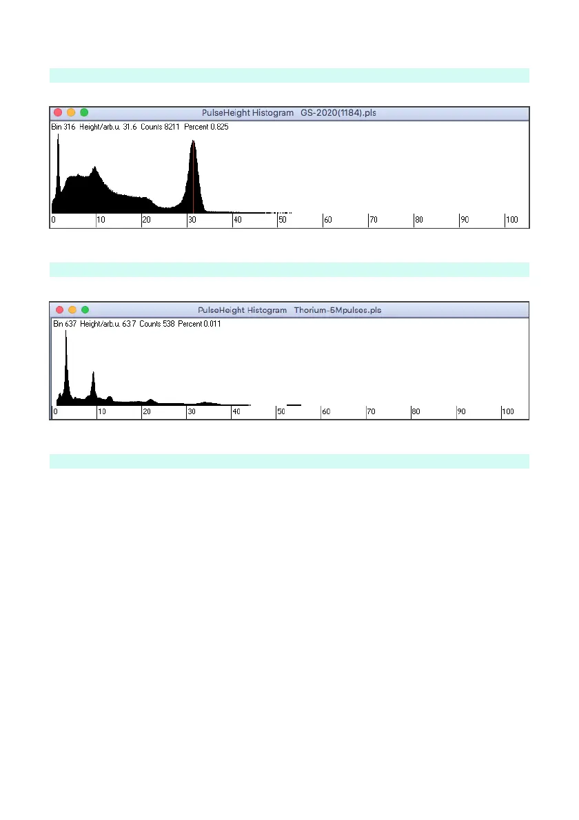 the pulse height histogram displays 100 arbitrary units (arb.u.), this