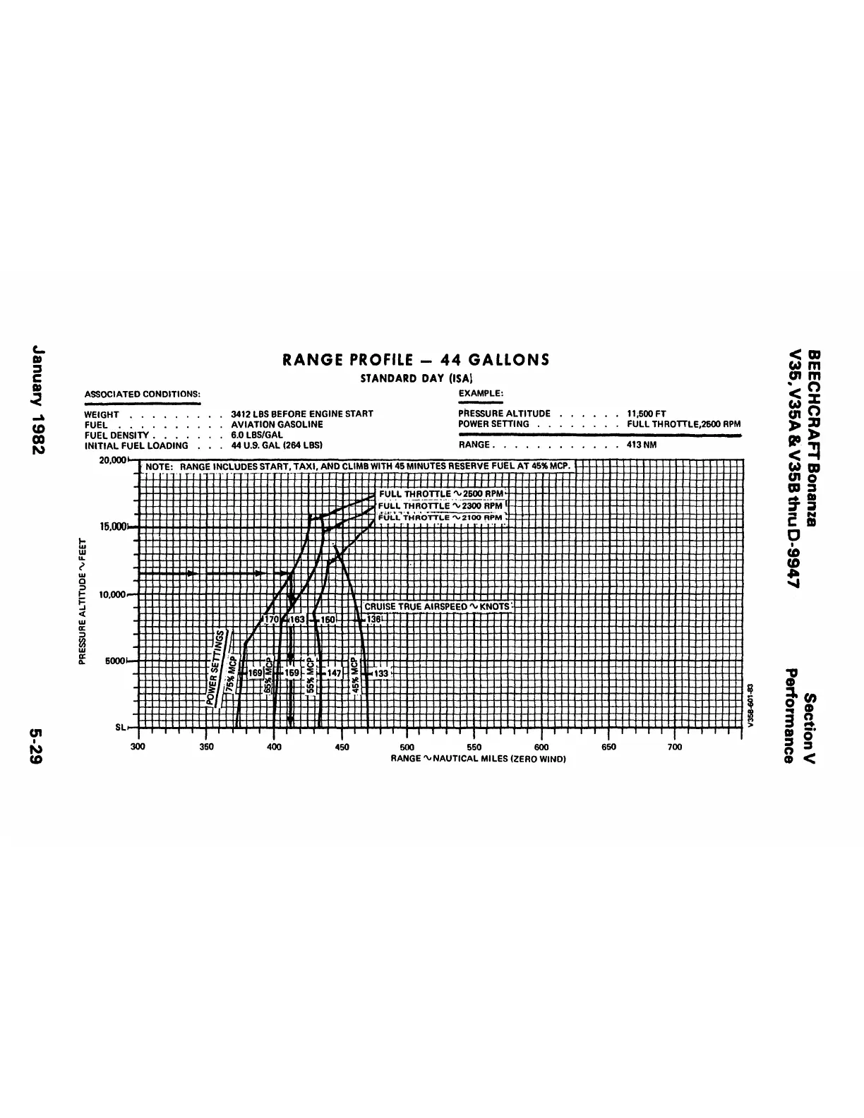 RANGE INCLUDES START, TAXI, AND CLIMB WITH 45 MINUTES RESERVE FUEL AT 45%MCP.