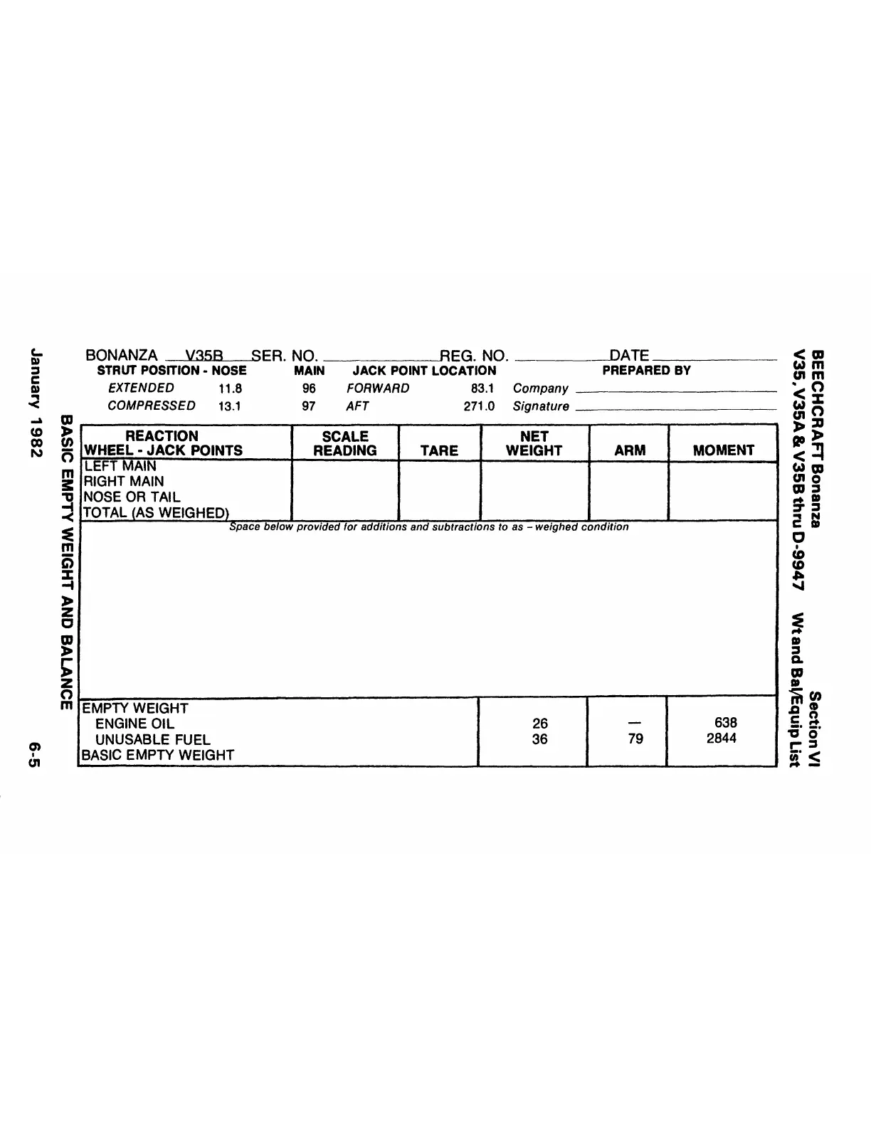 BONANZA V35R SER. NO·-----~REG. NO. DATE _____ _