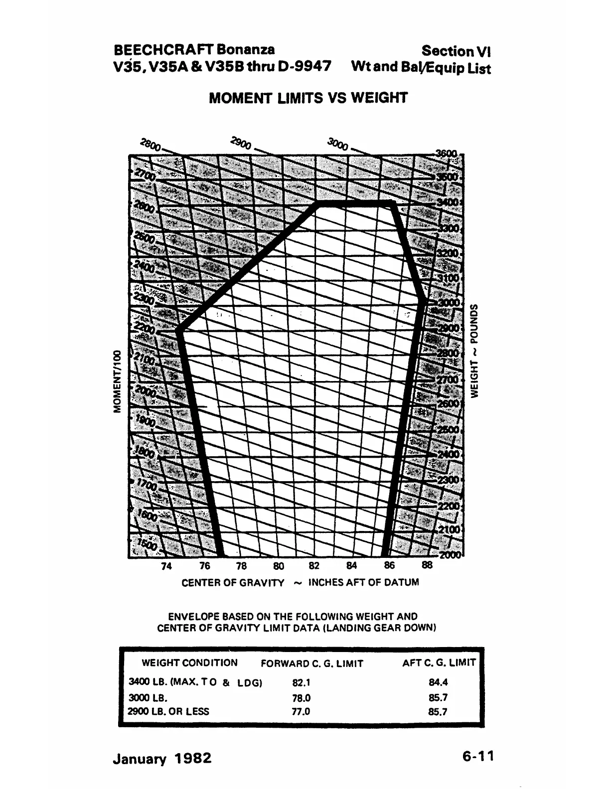 CENTER OF GRAVITY LIMIT DATA (LANDING GEAR DOWN)