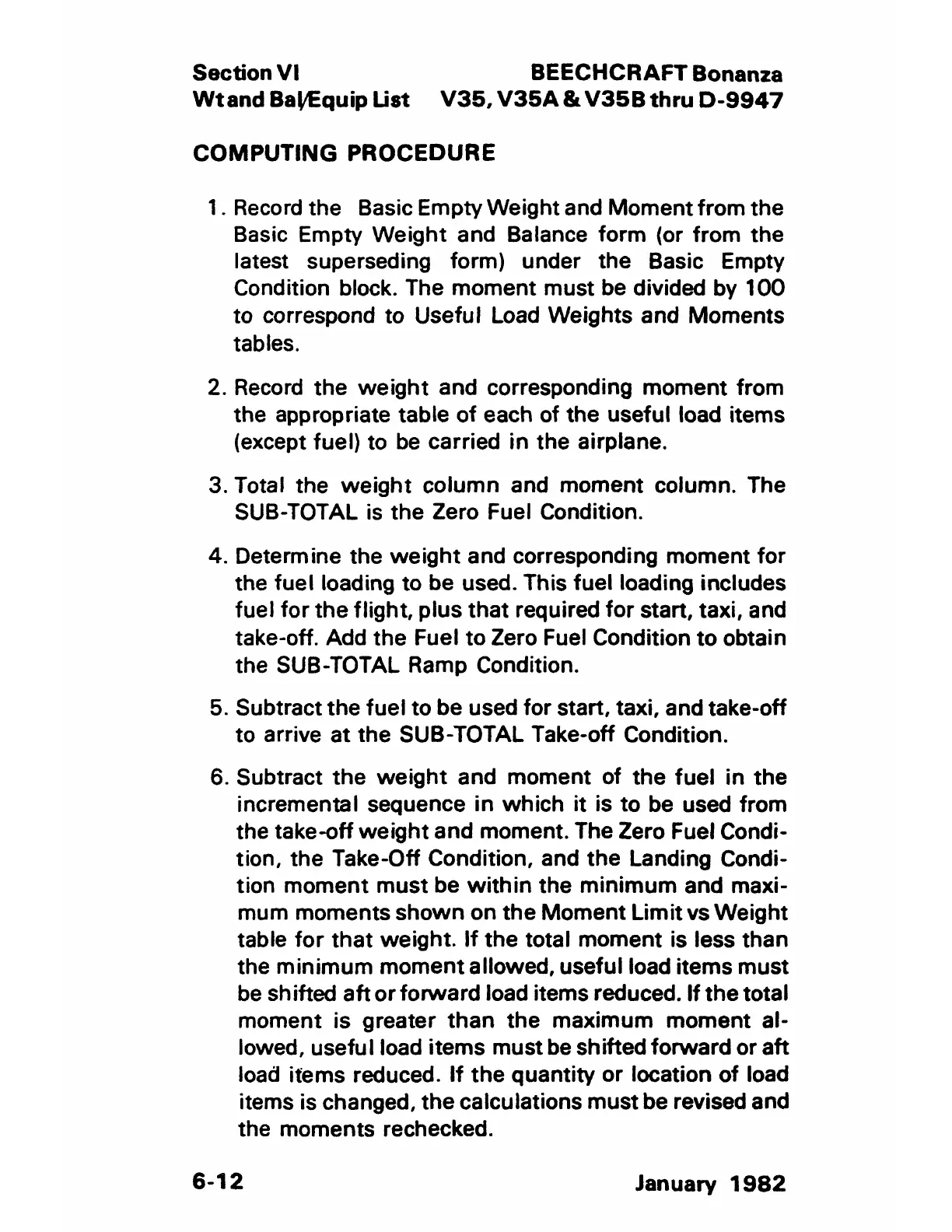 the take-off weight and moment. The Zero Fuel Condi-