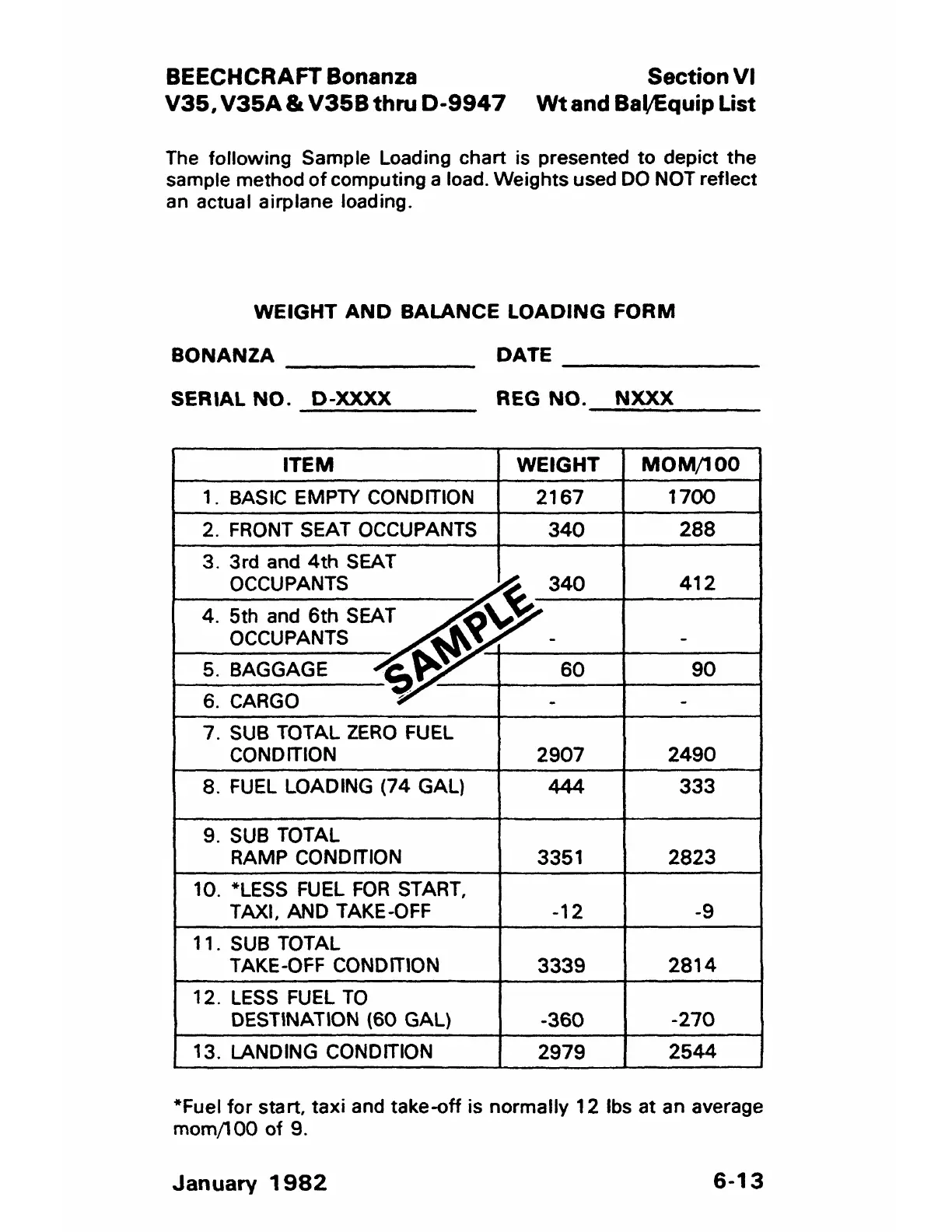 *Fuel for start, taxi and take-off is normally 12 lbs at an average