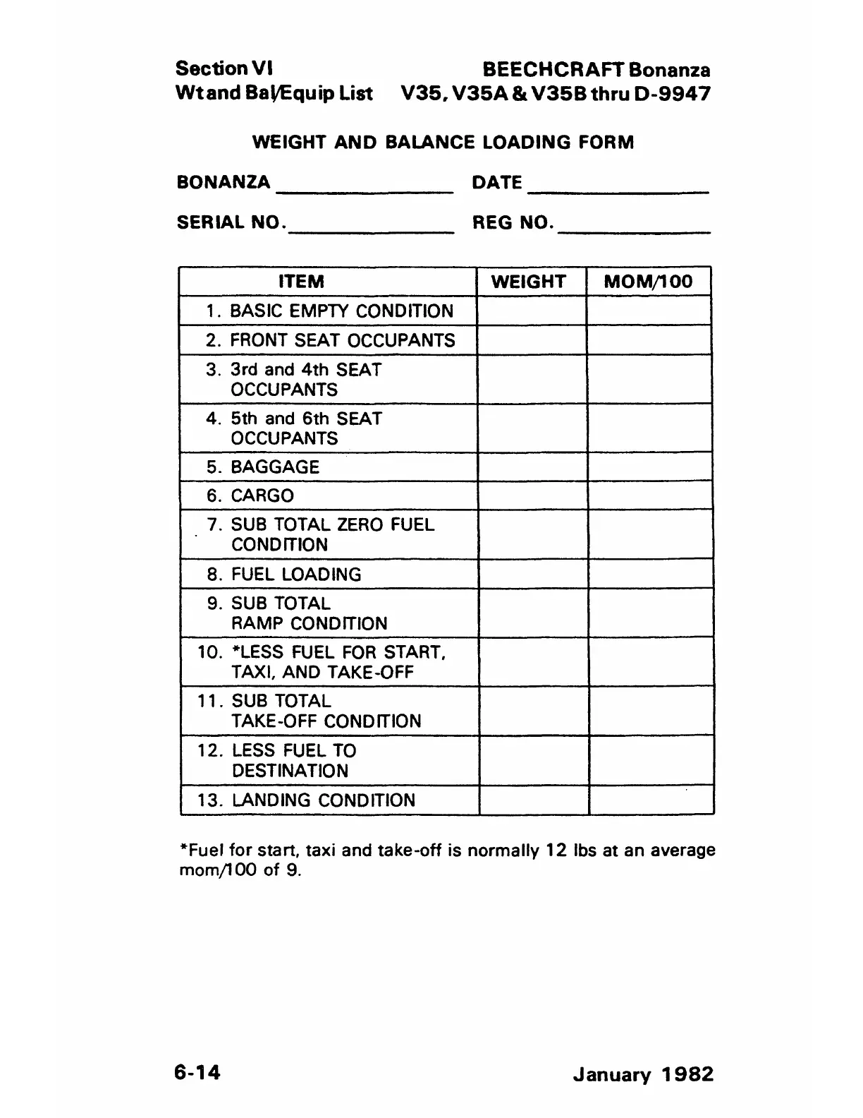 *Fuel for start, taxi and take-off is normally 12 lbs at an average