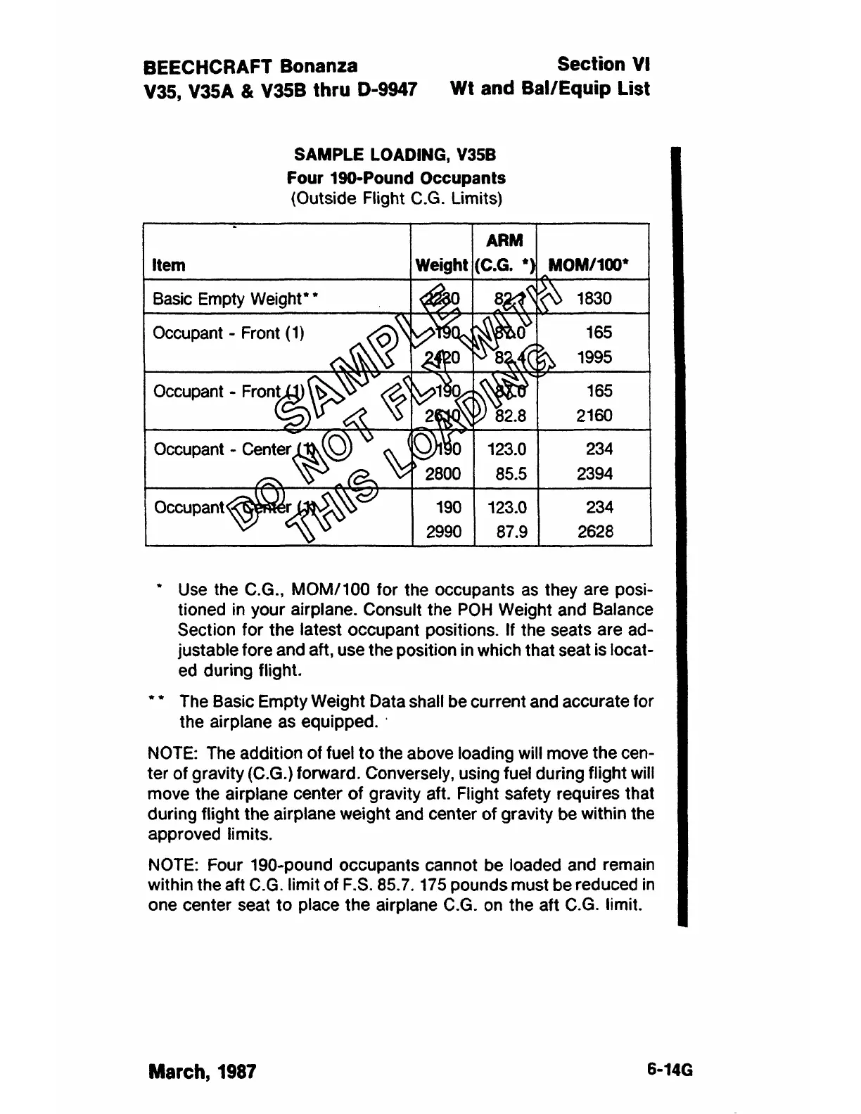 NOTE: The addition of fuel to the above loading will move the cen-