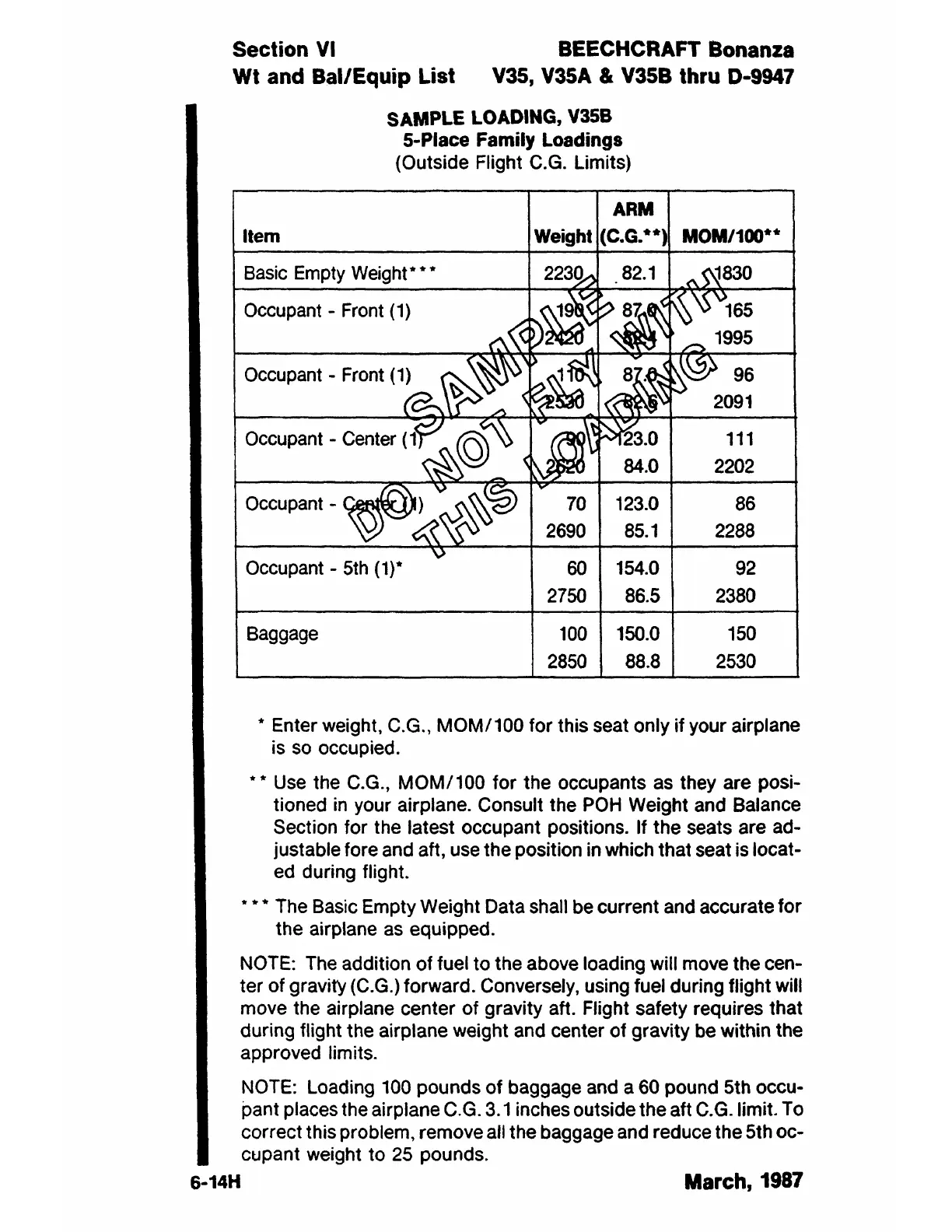 NOTE: Loading 100 pounds of baggage and a 60 pound 5th occu-