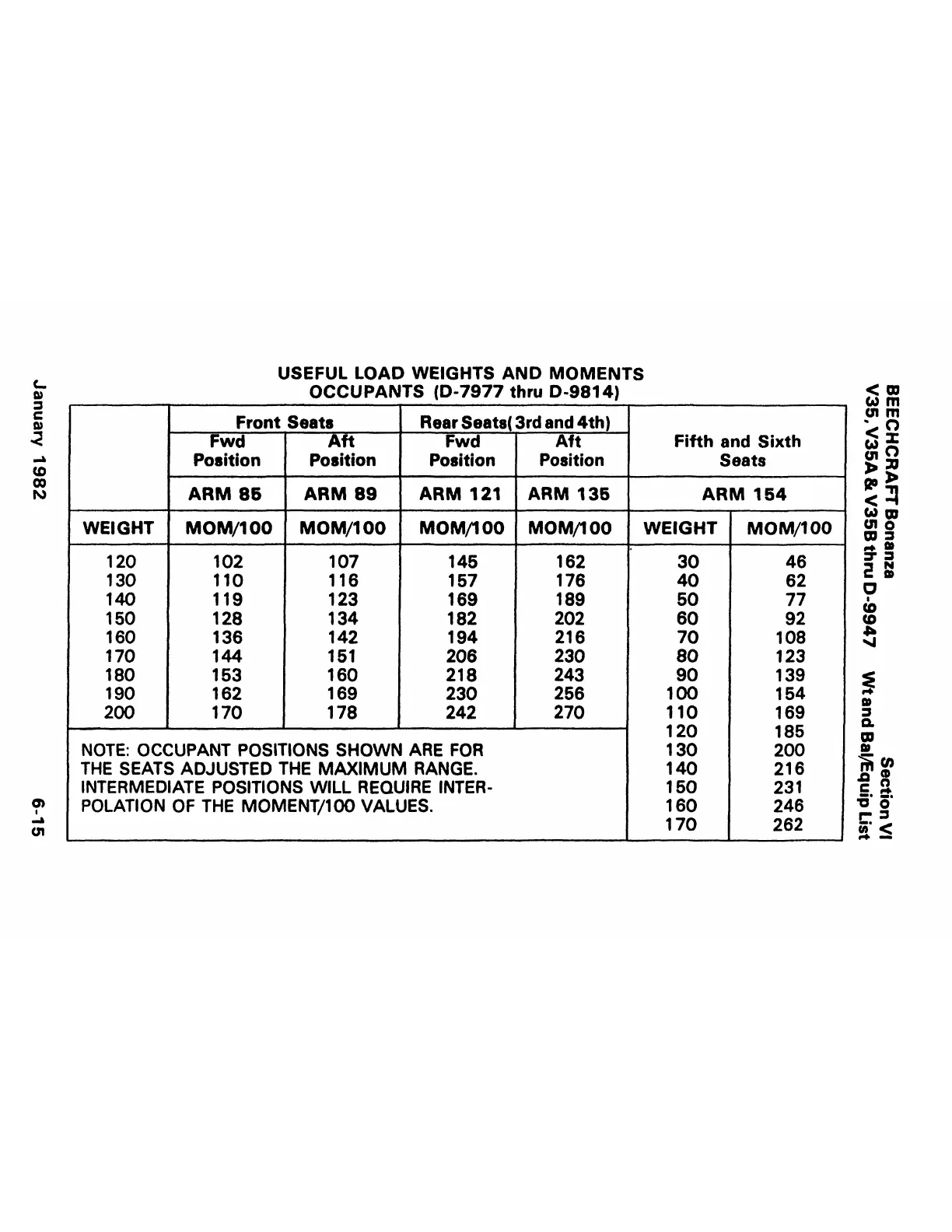 USEFUL LOAD WEIGHTS AND MOMENTS